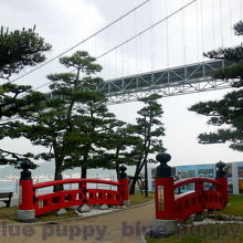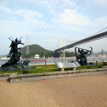 目の前は関門海峡、見上げれば関門大橋が見えます。