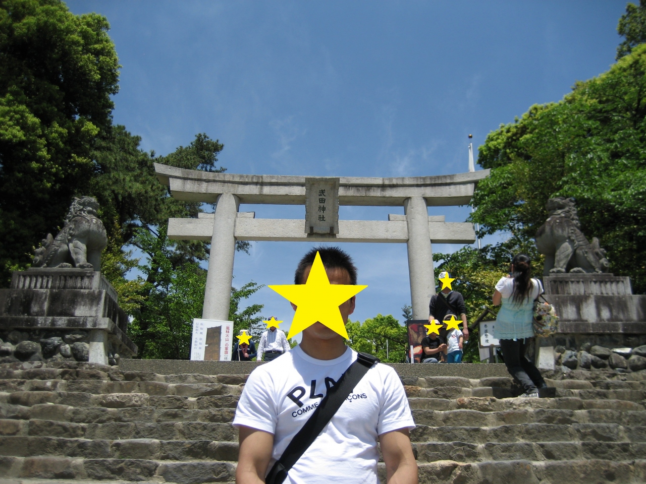 勝運の御利益があるとされ、重厚な造りの社殿では、参拝する多くの観光客で賑わっていました。