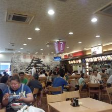 たくさんの人がくつろいでいますが、隣のハイウェイオアシスが華やかすぎるために、それと比べるとどうしても地味に映ってしまいます。