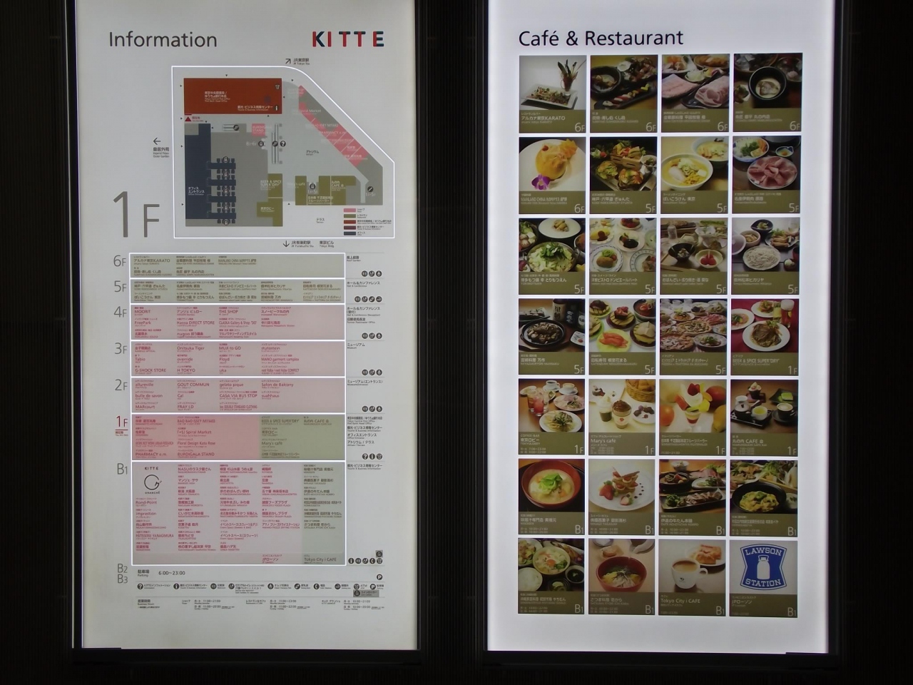 ここに着いたら、先ず1階のKITTEインフォメーションで、フロアガイド・グルメガイドと言う冊子を貰いましょう。