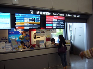 遠回りするので時間は掛かるが、主要駅に時刻どおりに直通で行くので、やはり便利です。第一ターミナルの北ウイングを利用しましたが、税関検査を抜けた直後に、チケット販売カウンターがありました。乗り場まではエスカレーターで下っていく必要があります。