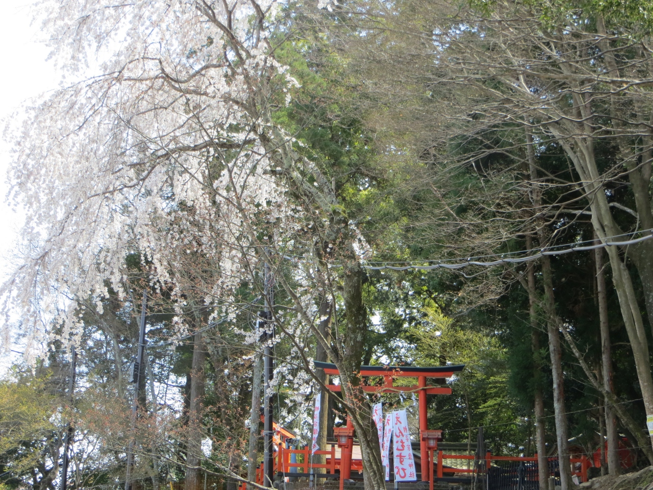 櫟谷宗像神社(イチイタニムナカタジンジャと読みます)は岩田山自然公園・嵐山モンキーパーク(餌付けされた野生の日本猿が300〜400匹)の入口にある神社で、モンキーパークに行く人以外はほとんど訪れることない神社ですが、この神社も桜が満開でとても綺麗でした。
