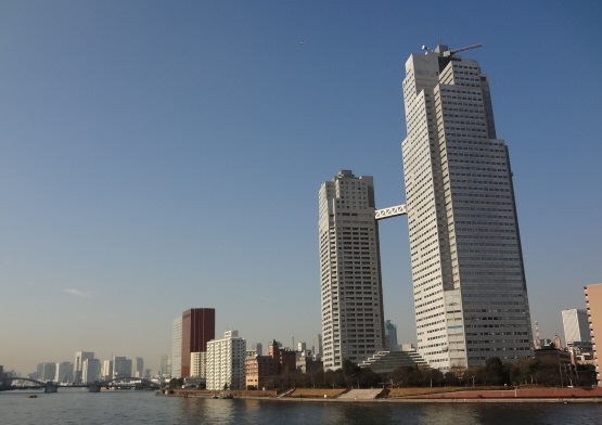 聖路加ガーデンは築地方面からも目立ちますが、やはり隅田川のむこうから川越しに見る姿が最高だと思いました。