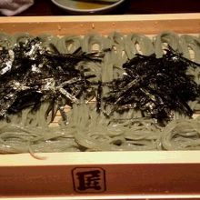 なかなか、へぎそばを提供する店ってないので、当然、へぎそばも注文。この緑かかった光沢のあるそばも美味しい!