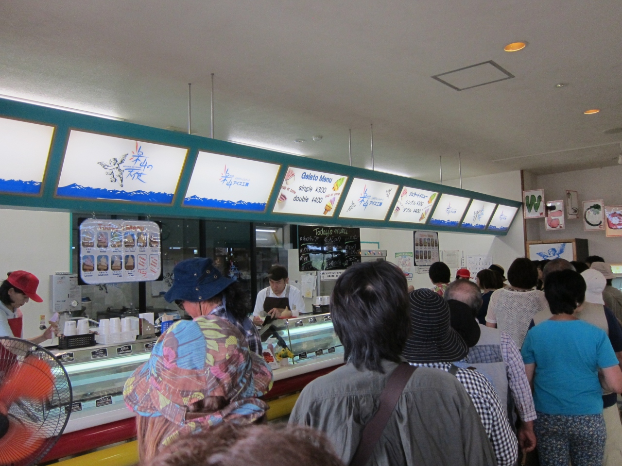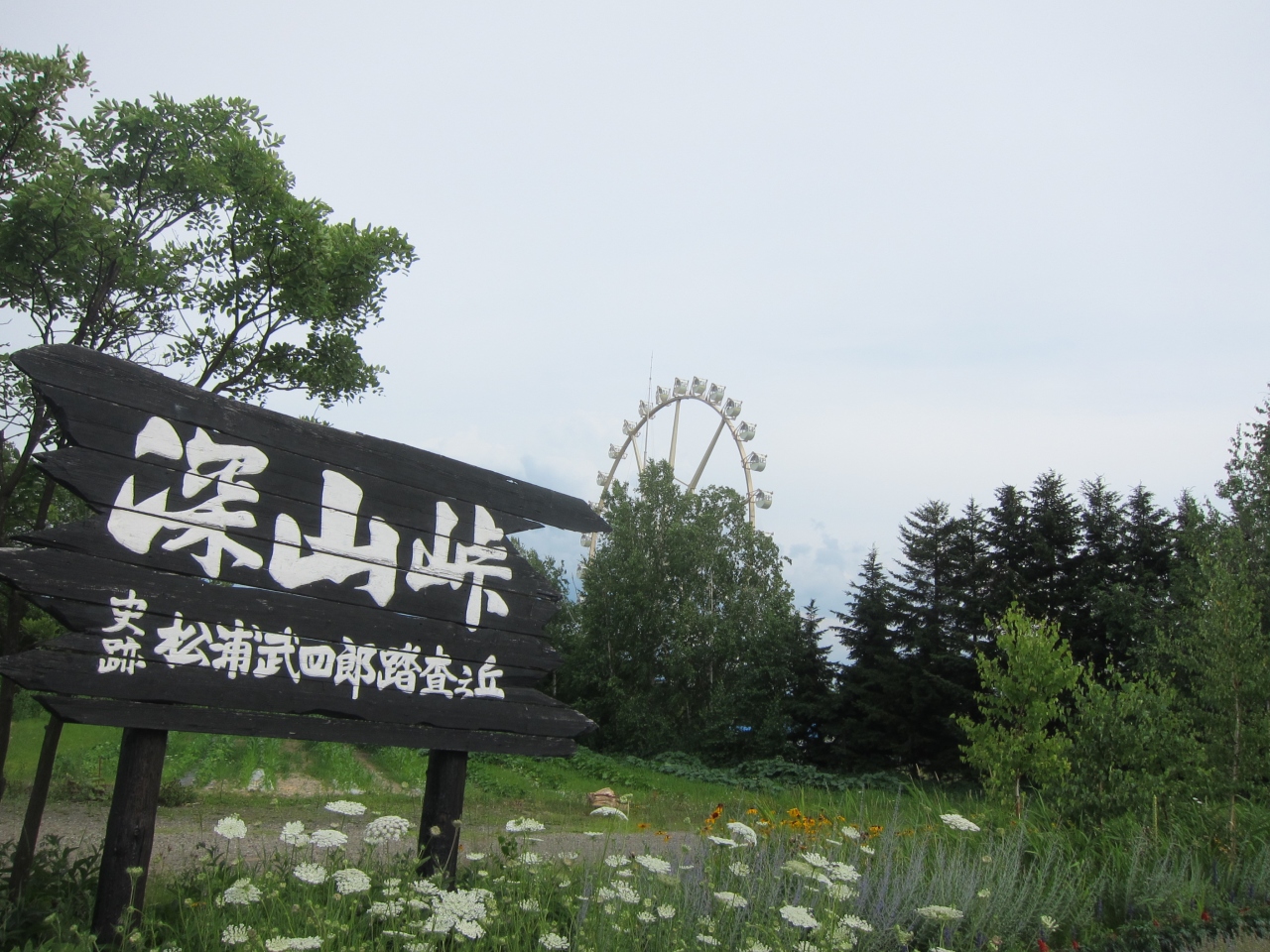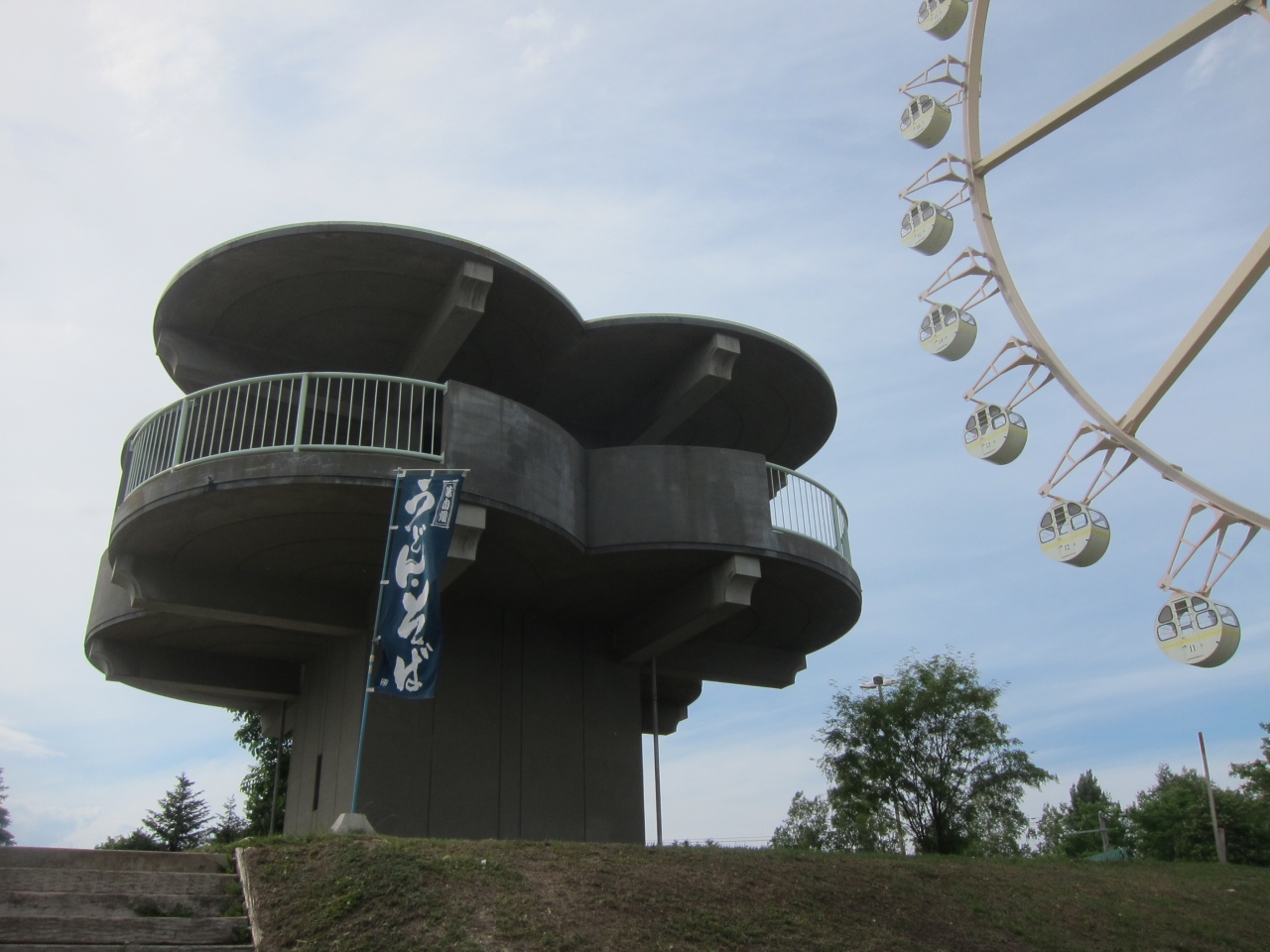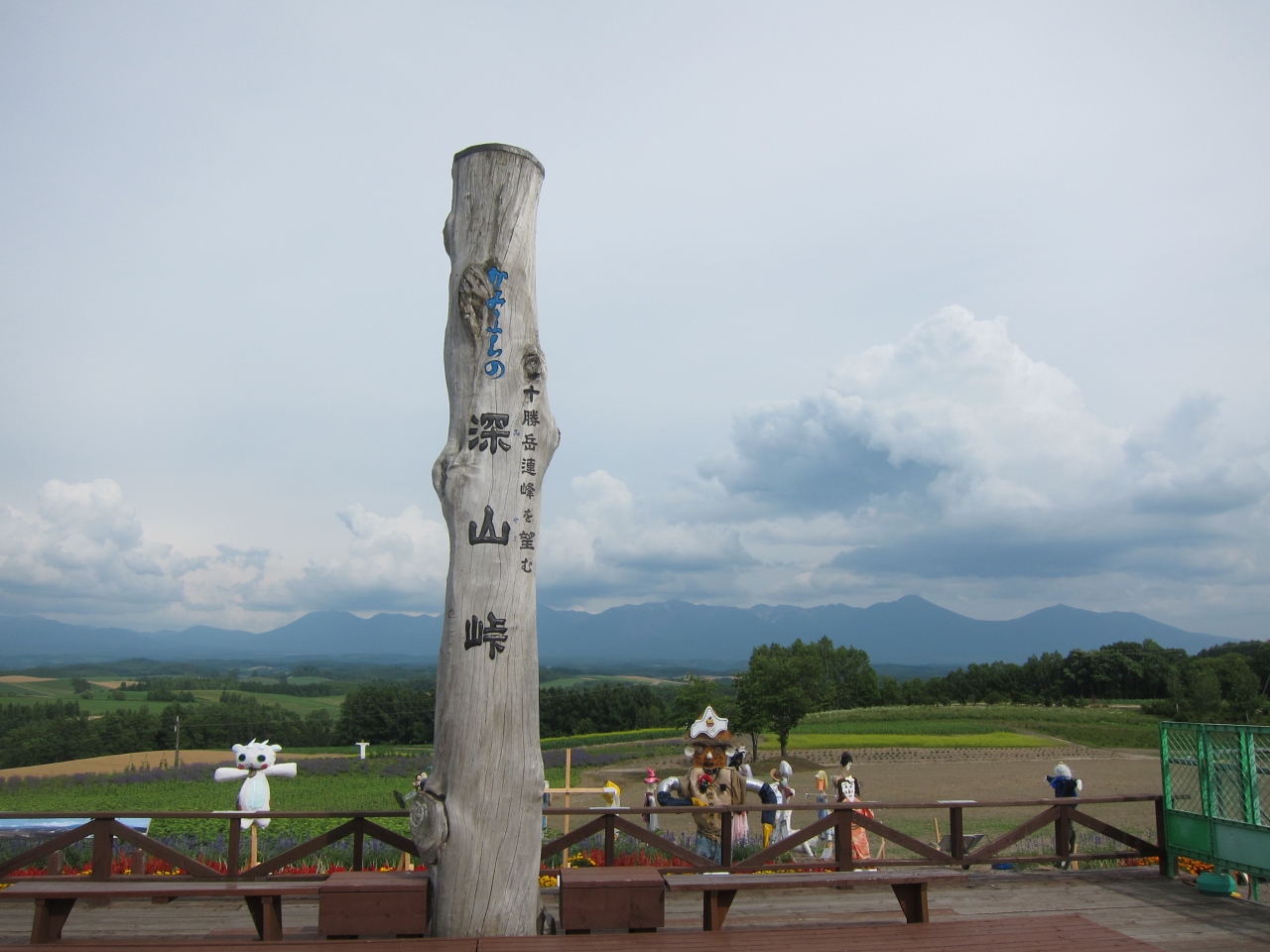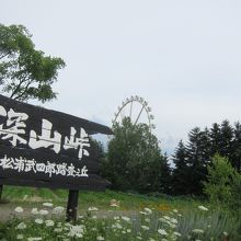 オーナー園から100~200m上富良野の方にかけて、国道沿いに飲食店が並び、そして、大きな観覧車が建っています。現役で営業しています(¥600円)。広い駐車場の奥に、展望台やトリックアート美術館、露店、カフェ(バーベキューコーナーがある)、アイスクリーム屋さん(深山アイス工房)があります(深山峠アートパーク)。アイスクリーム屋さんが一番賑わっています(それ以外は、人はまばらです)。展望デッキ上に並んだテーブルでいただけます。