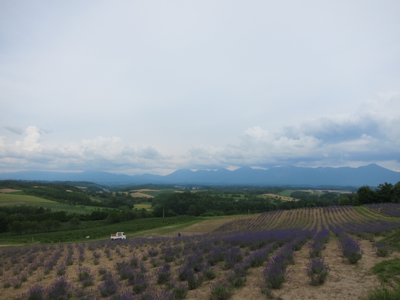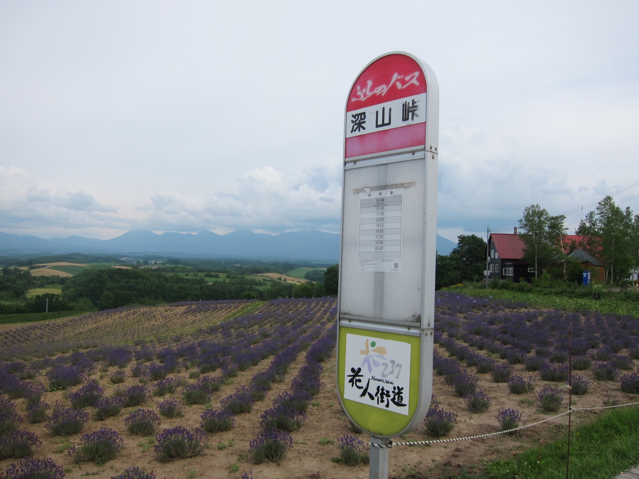峠と言っても、山奥の森に囲まれたような場所ではなく、富良野・美瑛の連続する丘でも、ちょっと高いところという印象でした。富良野線の車窓からも、オーナー園のラベンダーが、木の間越しにわずかに見えました。