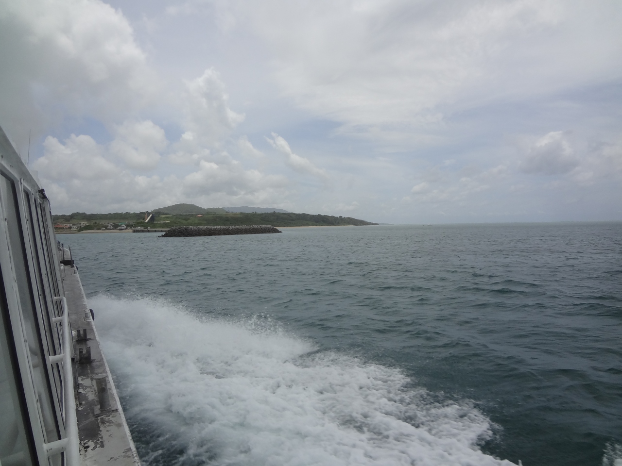 石垣島から小浜島まで乗船しました。石垣離島ターミナルを出発してしばらくすると沖縄らしい海の色と風景が広がってきます。客席は船の前方と後方に別れていて、前方は一段低くなりますが、完全な室内なのでエアコンがきいていて椅子もしっかりしています。対して後方は半屋外状態なので、椅子が簡素だったり、暑かったりですが、窓が開けられ船尾のデッキにも出られるので、景色を楽しみたいのであれば、こちらがお勧めです。