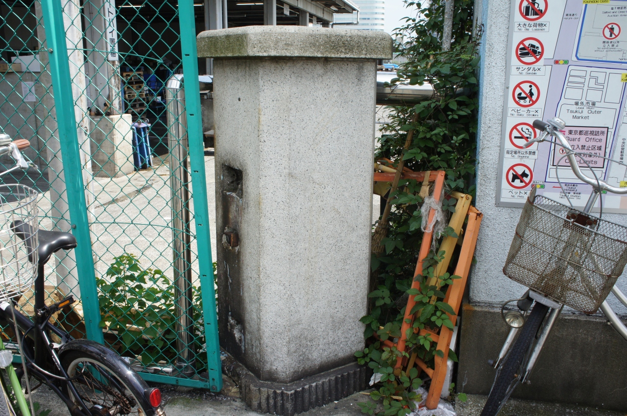 海幸橋は、波除神社から築地市場に入る入口のところ。今では親柱しか残っていません。