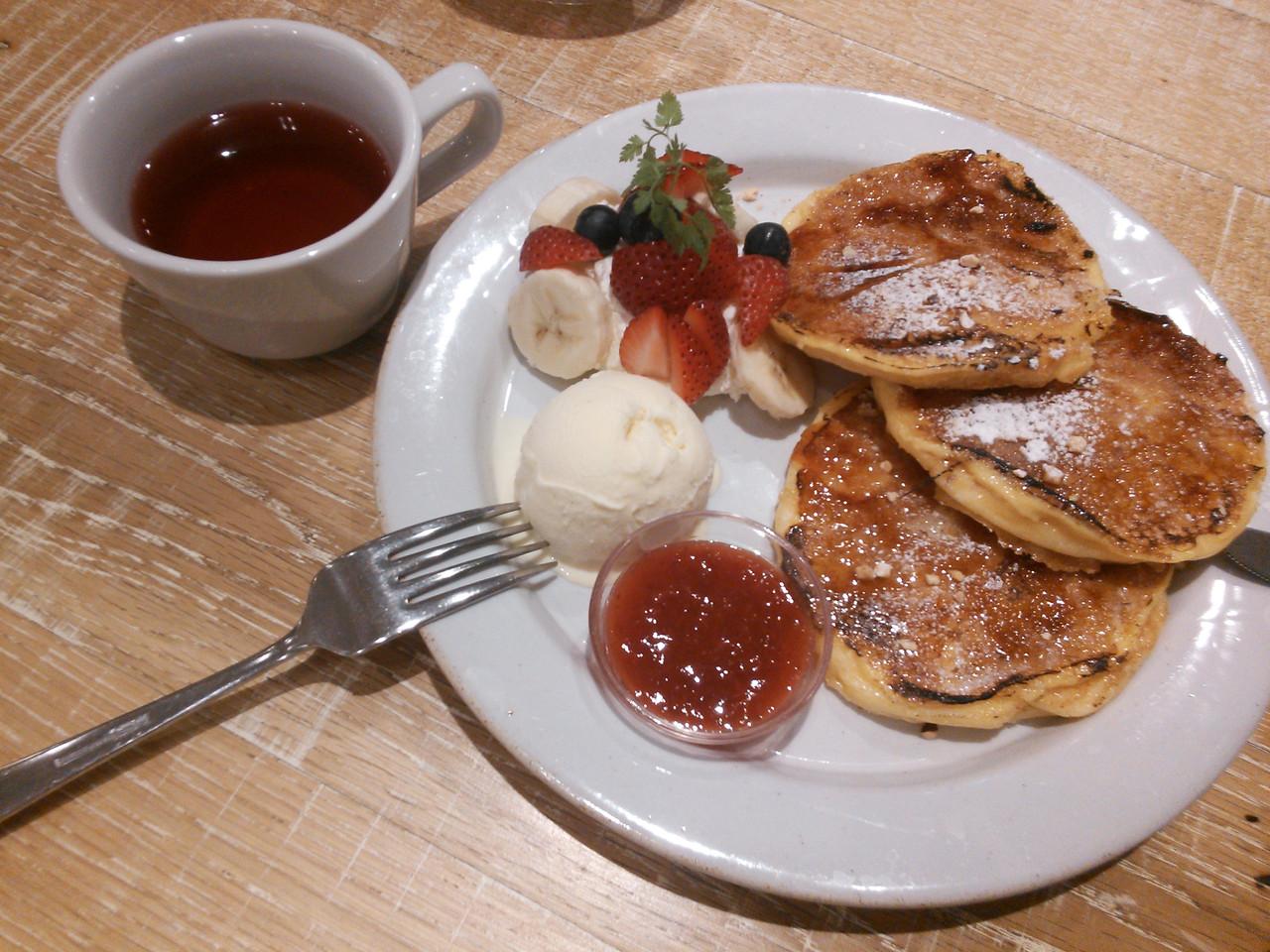 パンケーキのお店。飲み物もジャスミンティー等もあります。可愛らしい生活感ありそうな雰囲気の店内です。
