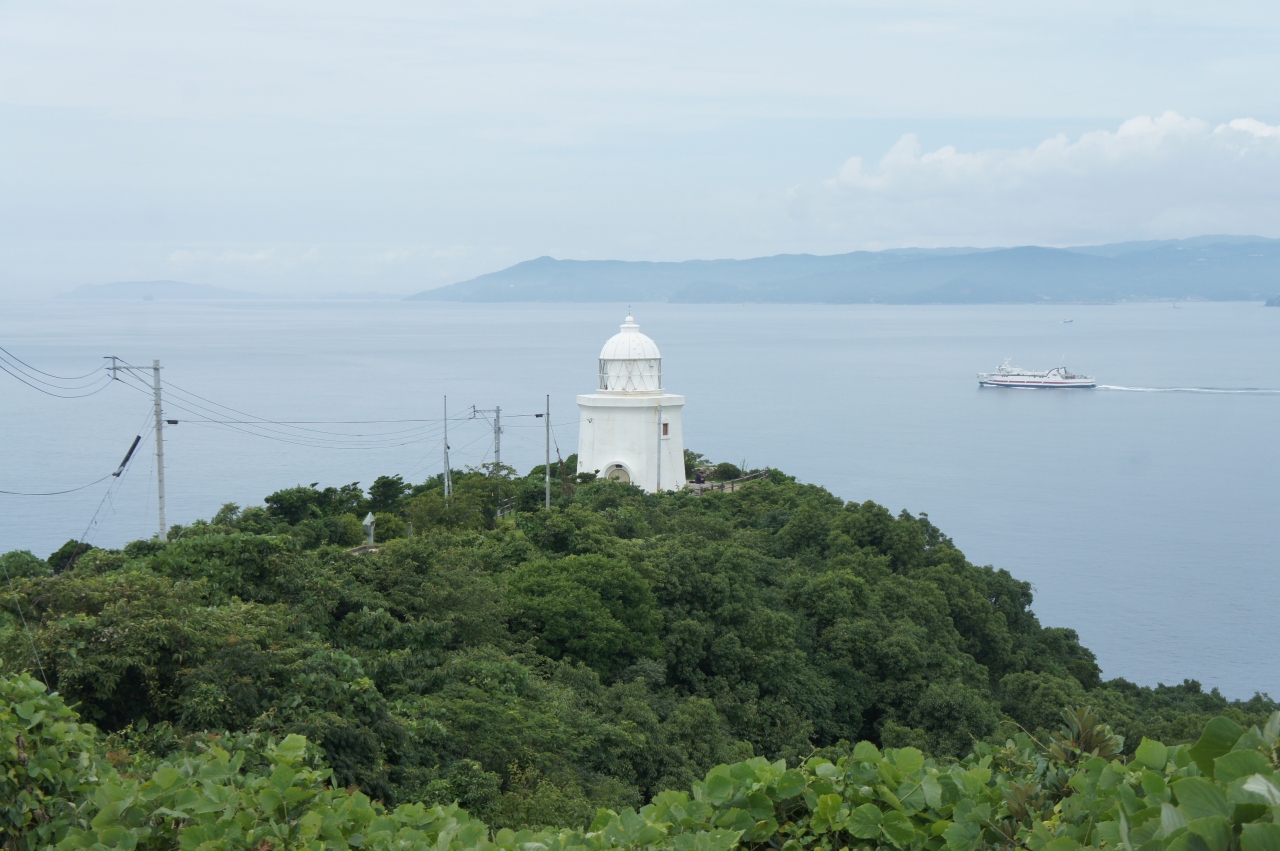 幕末の開港に伴い建設された8基の洋式灯台の1つで、明治4年に点灯。長崎港の南西10kmに建って、長崎港に出入りする船舶の航行の安全を担いました。