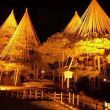 3月の終わりの夜、兼六園の雪吊りを見に行きました。昼間も綺麗ですが、夜はライトアップがされていて趣き深く綺麗でした。加賀百万石の凄さと言うか、とにかく手入れも行き届いて美しい庭園でした。一年中楽しめるんじゃないかなと思います。