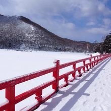まだ雪が残る3月、赤城山登山の前に参拝しました。あたり一面は真っ白。神社を取り囲むようにある湖(池?)も凍っており、白銀の世界に浮き立つ朱色の神社が印象的でした。