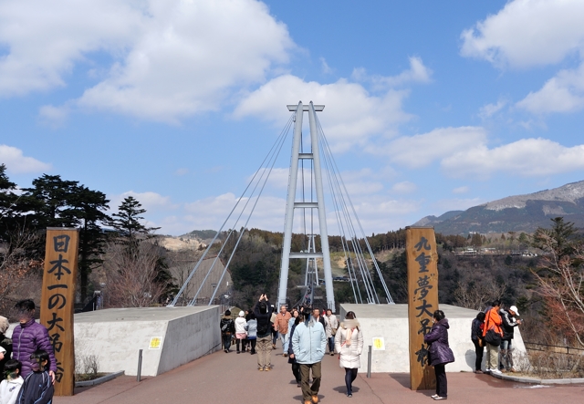 湯布院から福岡に向かう途中に寄りました。高さ173mの空中散歩は、高い所が苦手な人にとっては、足がすくみます。多少の風や人の行き来で揺れることもあるので、怖かったですが、引き返すのはもったいない気持ちだったので、何とか歩きました。