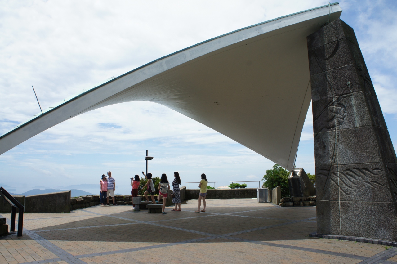 弓張岳展望台は、佐世保市街を見下ろす有名な展望台。地図では佐世保市内からは近いように見えましたが、曲がりくねった道をかなり登る感じで、夜景のベストスポットとも紹介されていましたが、夜に上るのはどうかなあという感じです。ただ、佐世保市外を眼下に見下ろす眺めは、確かに素晴らしい。佐世保観光ではぜひ寄ってみたい場所の一つでしょう。