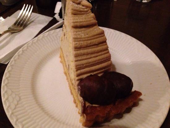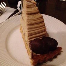 オーダーしたのは、モンブランとアイスコーヒーのセット。モンブランは大き目サイズで、甘さ控えめでぺろりといけます。下はタルトになっているので、モンブランとタルトの両方を食べられて得した気分。