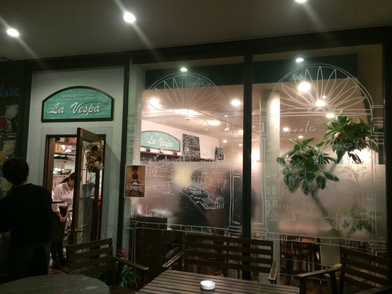 ハイキング仲間25名と暑気払いで、訪問。貸し切りでした。大きなダイニングの3つのテーブルに、全員で満員。飲み放題で、まずはビールでのどを潤した後、それそれ気ままに、ワインなどを楽しんだ。料理も、前菜の生ハム、サラダ、ピザ、パスタと結構おなかがいっぱい。味も、楽しめたので、また来ようということになった。