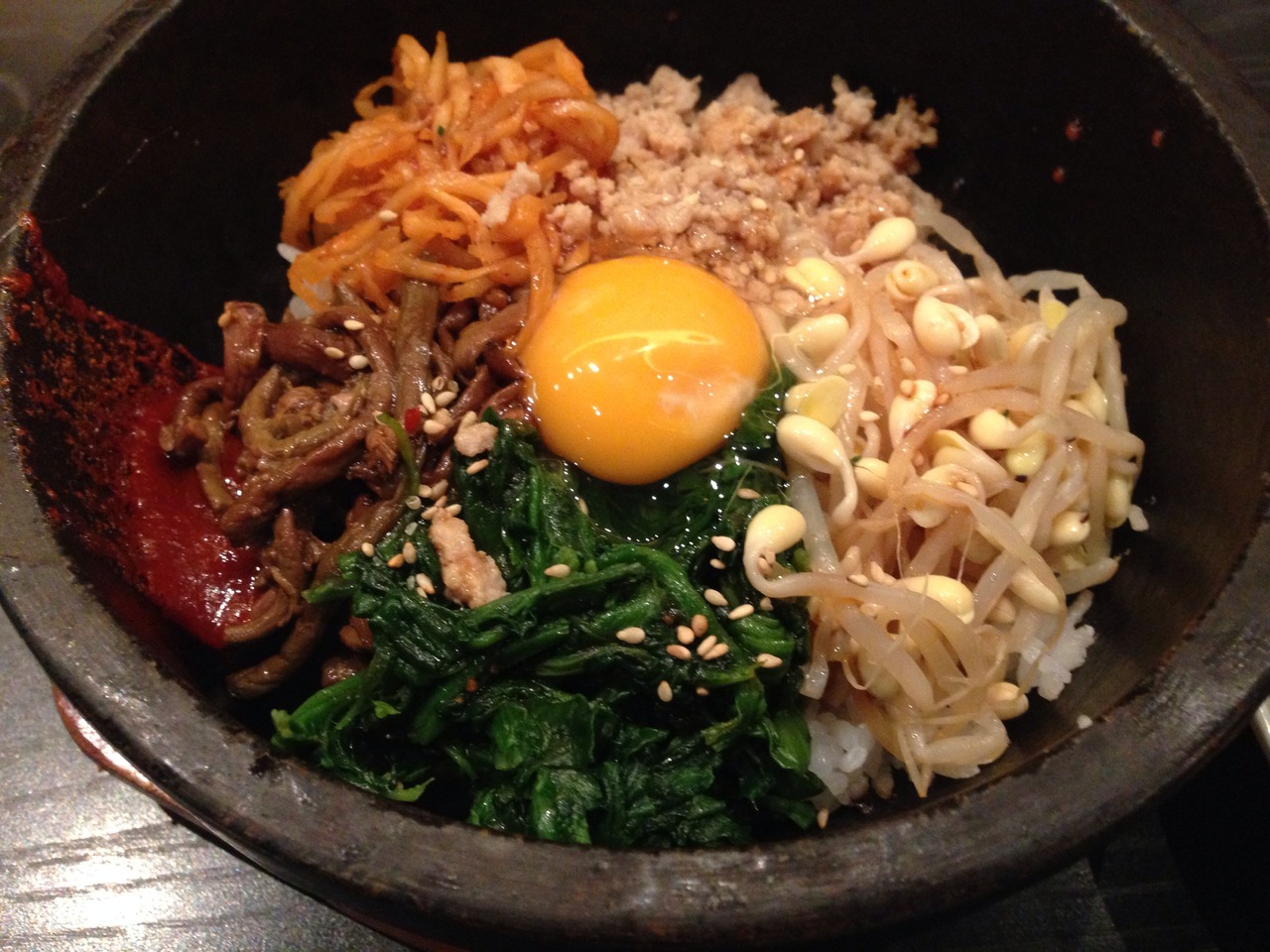 着席してほどなく料理も来ますし、ランチタイムは一皿だけナムル中心のサラダバーを自由に取れるので、野菜もとれてよいです。