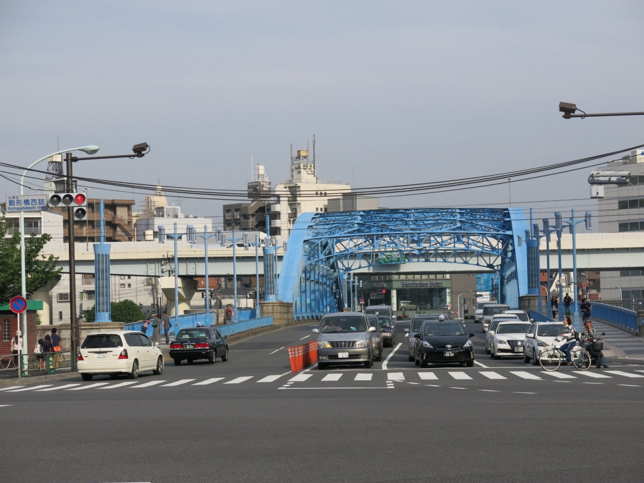隅田川には様々な個性的な橋が架かっています。この駒形橋もそんなひとつ。隅田川の橋の多くと同じで関東大震災復興事業に伴い建造された橋です。青いアーチが印象的な橋で、浅草に近いこともあって東京スカイツリーがよく見えますよ。