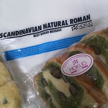 枝豆のポンデケージョはもちもちです、金時豆のマーブルパンはケーキのような食感でした。