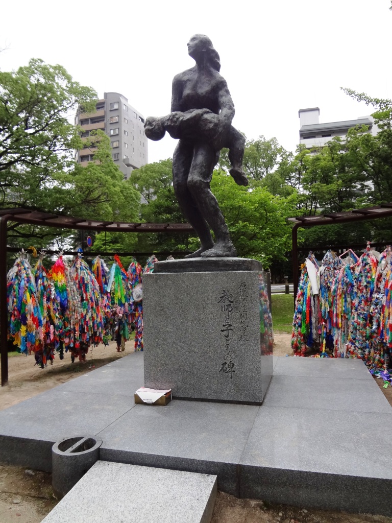 広島市の平和公園の広島国際会議場南側にある「原爆犠牲国民学校教師と子どもの碑」。ぐったりした教え子を抱え、みずからも被爆した女教師が悲嘆にくれる姿の像が立っています。犠牲になった子どもや教師を慰霊するとともに、原爆を許してはならないという平和教育の推進を決意を表したものだそうです。何だか、とっても政治的。原爆による国民学校生徒の犠牲者は約2000人、教師は200人とされています。立てられたのは1971年。日教組がすごく元気で平和教育がやたら賑やかなころだったなあ。