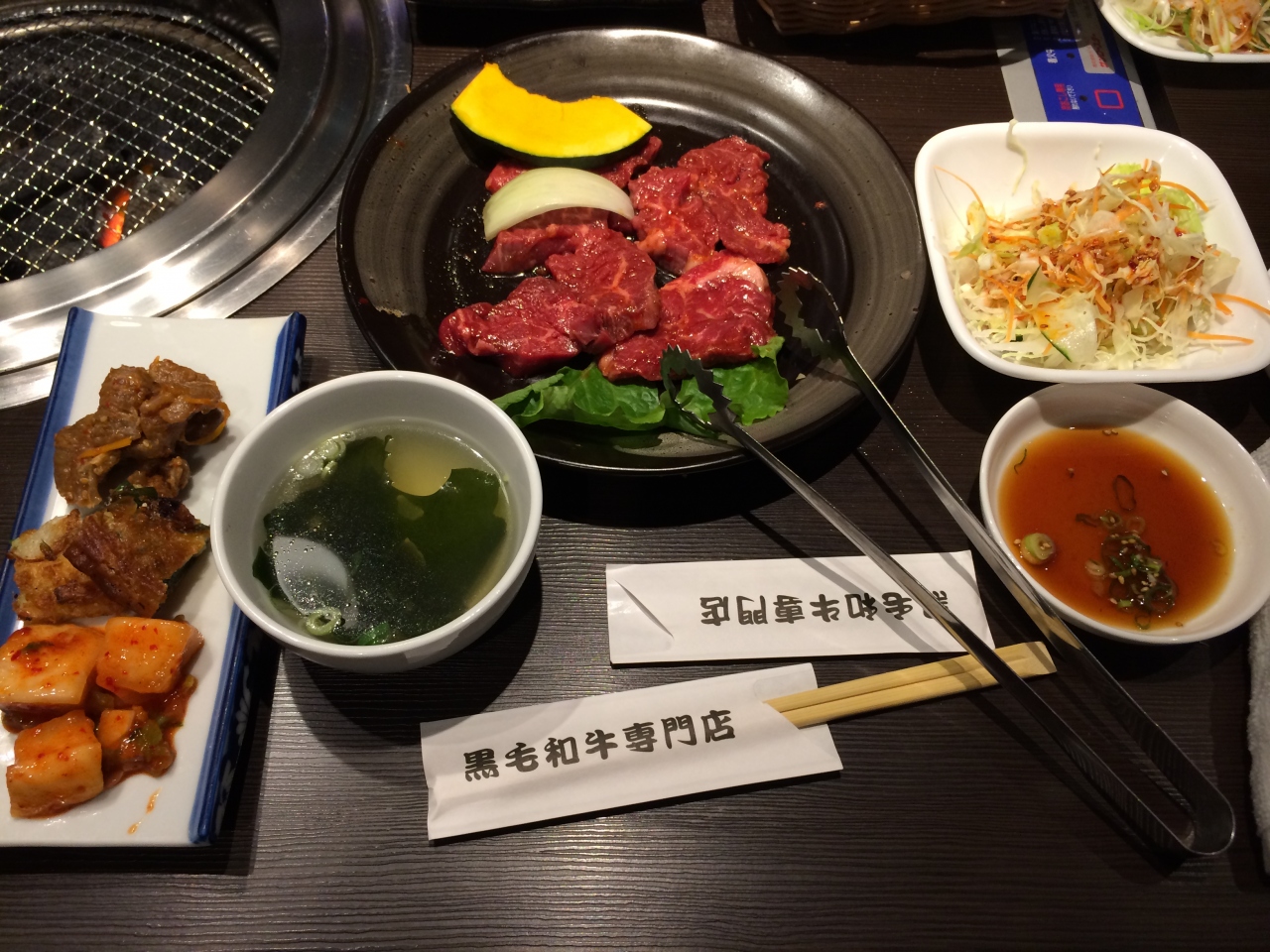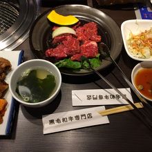 通常の単品メニューもありますが、ランチは焼肉・サラダ・スープ・ご飯がセットになって1500円未満でお得です。