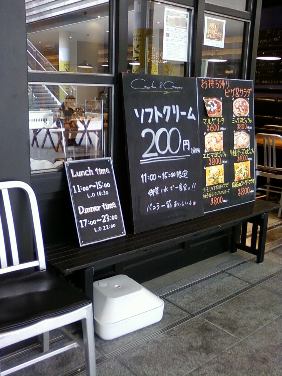 ここのガストン&ガスパールは、東京メトロ千代田線の新お茶の水駅に連結している、お茶の水ソラシティーにあります。焼きたてピザのお店で、新鮮な熱々をカジュアルな雰囲気で食べれるのが嬉しいです。アメリカにあるイタリア系のピザ屋さんという感じ。夏場はソフトクリームもあるんですね。テイクアウトピザはおみやげに絶対喜ばれます。