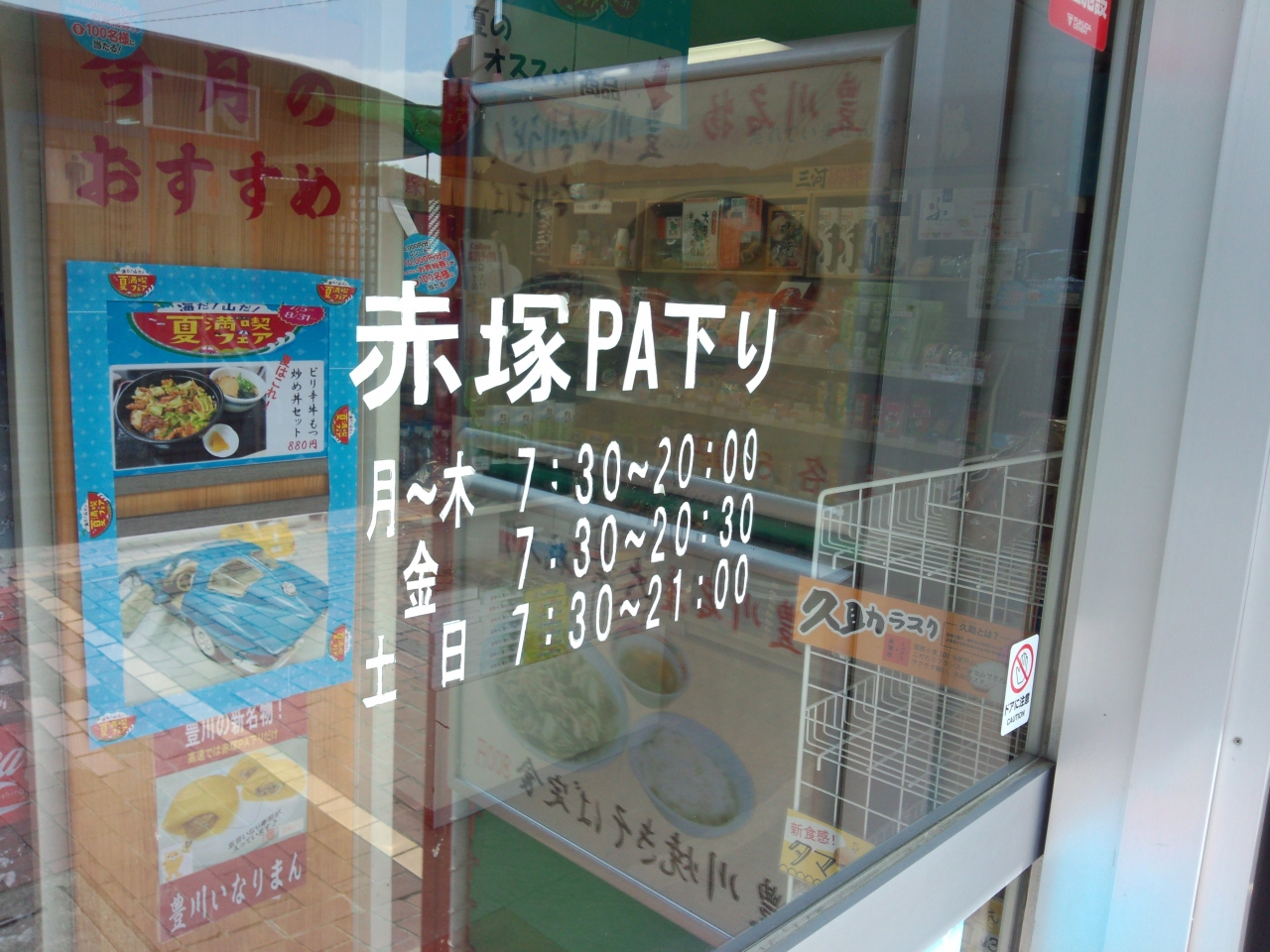 東名高速道路(下り)で、休憩のため立ち寄りました。いなりずしなど豊川名物がありますが、小さなパーキングエリアです。