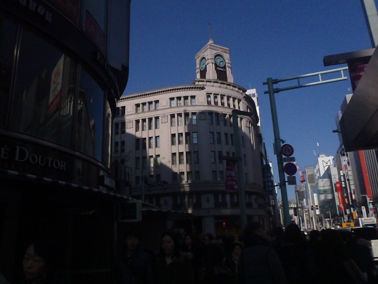 なんと言っても角にある和光のビルと日本一の地価の鳩居堂、銀ブラはここから楽しみましょう。