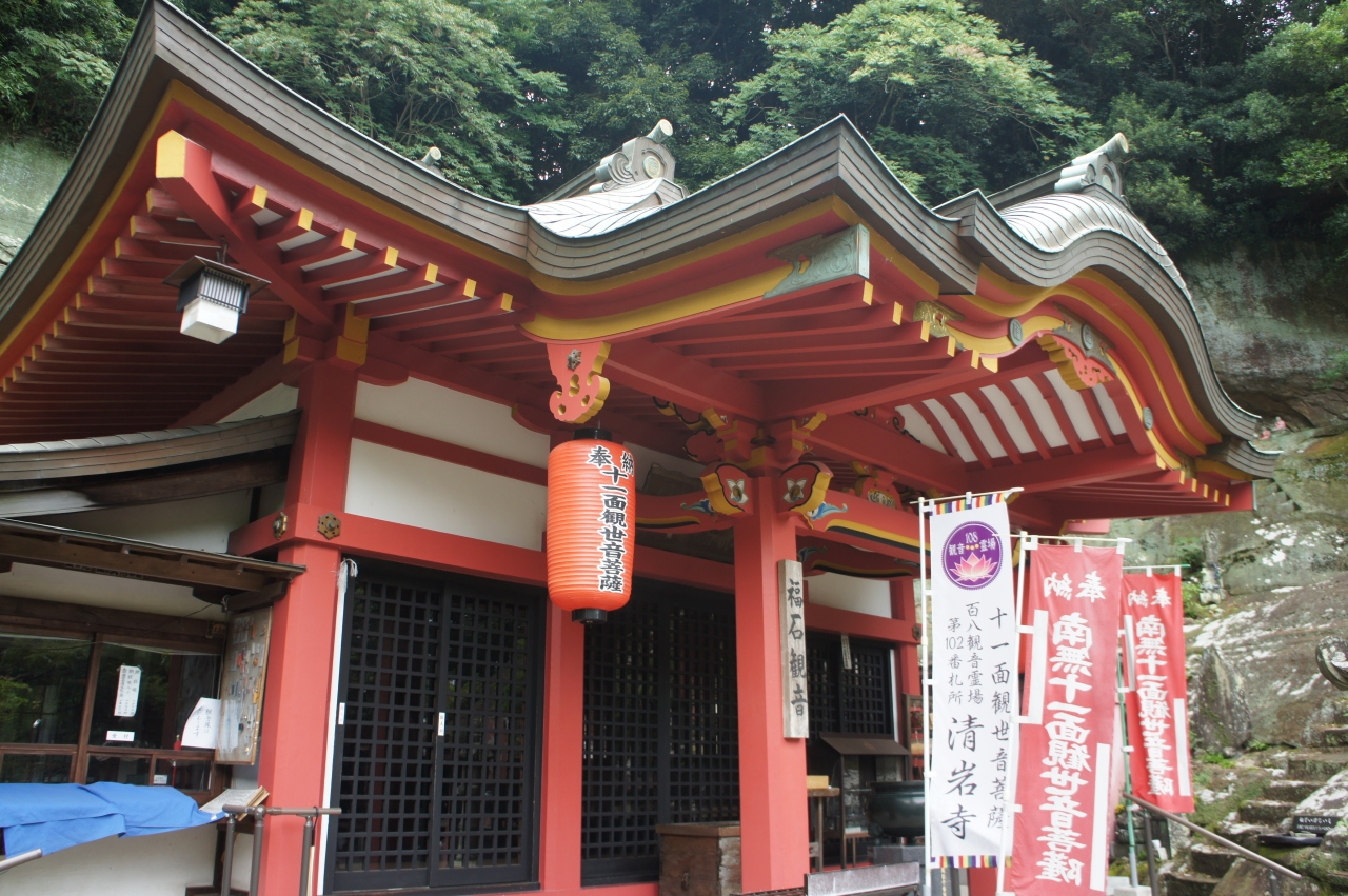 福石観音は、行基作の十一面観音を岩穴に安置した安産祈願の観音。現在の本堂は、天明5年(1785年)に、平戸藩主松浦清の寄進により建立されたもの。