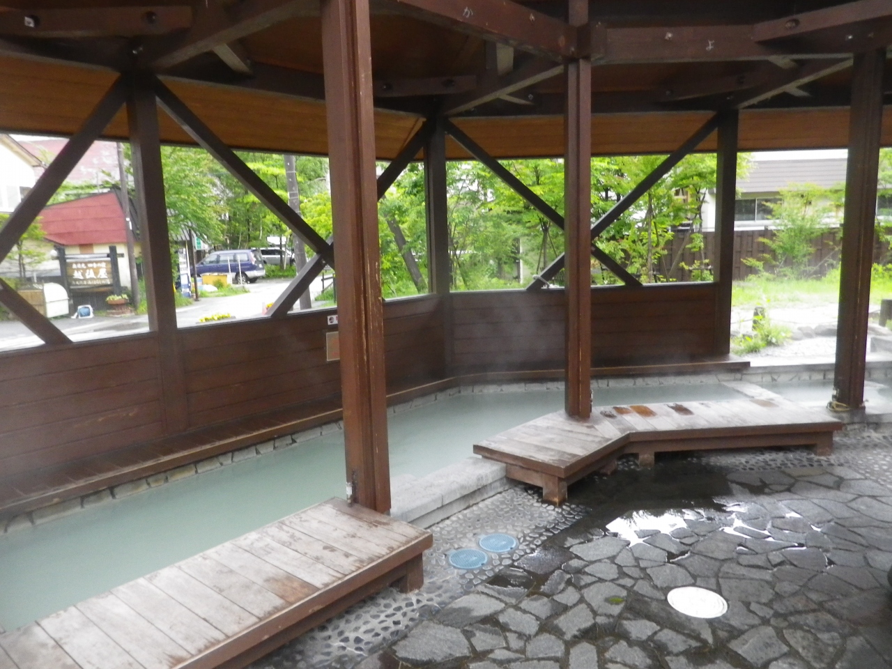 奥日光湯元温泉の旅館街にある無料で利用できる足湯です、白濁色の硫黄泉で温泉らしいお湯です、湯元温泉のバス停から近いので待ち時間にちょっと入ると良いでしょう、周辺を歩いた後に入れば足の疲れが取れるでしょう、そばにあるつるや羊羹店でタオルが販売されています。
