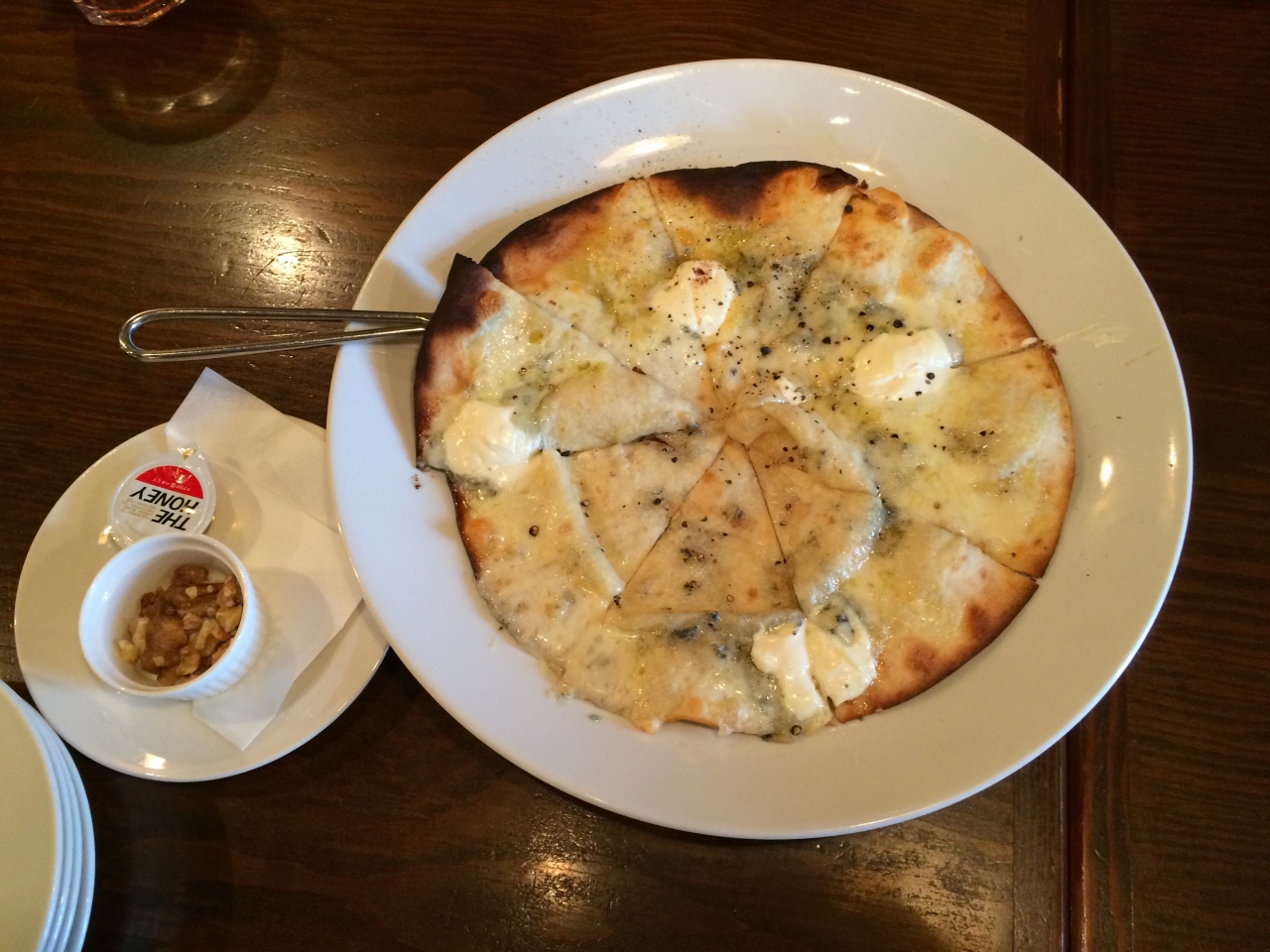 東急百貨店裏にある、チェーン店のパスタ・南欧料理レストランです。ランチ時にちょうど近くを通りかかったので、週末のお昼時に家族で寄りました。店内はにぎわっていましたが、すぐに席に案内してもらいました。ランチメニュー(ドリンク飲み放題付)から、「ピッツァクアトロフォルマッジョ」¥1000と、「ベーコンのカルボナーラのパスタ(大)」¥1130、「本日のオススメのパスタ」¥1000を頼み、家族でシェアしていただきました。ピザもパスタも美味しくて、子どももよく食べました。小さな子ども連れの家族も多く、子ども用の補助いすや食器なども貸してくれます。お店は2階ですが、エレベーターもあり、ベビーカーは入り口横におけるので、ベビーカーでも大丈夫なレストランです(ベビーカーに座ったままお食事をする場合は、テーブルまでベビーカーで行けます)。