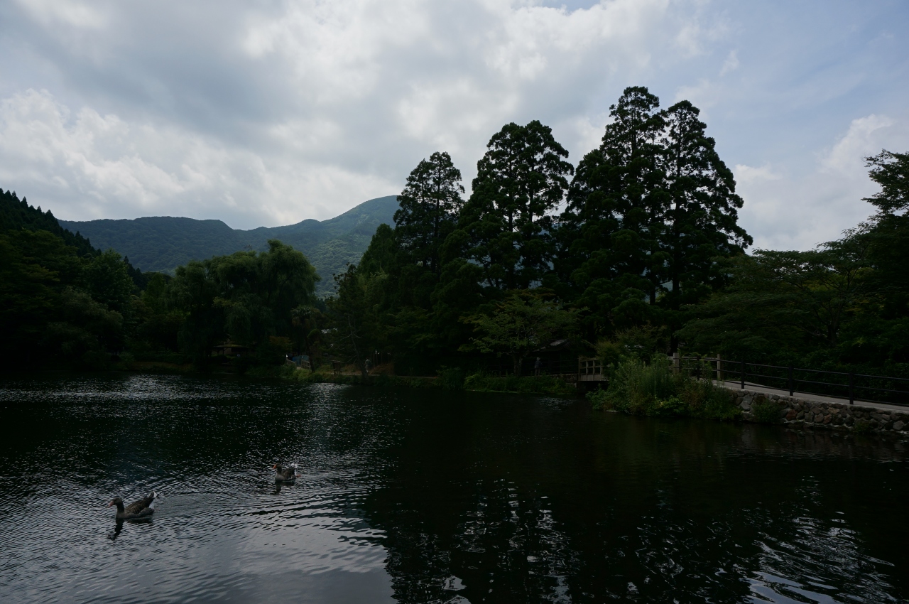 由布岳のふもとにあり、のんびりと水鳥や、鯉が泳いでいました。