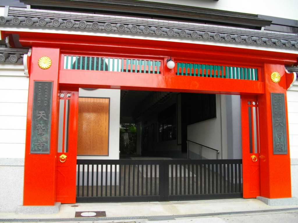 門の赤色といい、結構普通のビルのようだったり、何となく怪しい新興宗教という雰囲気のお寺なのですが、天台宗のお寺だそうです。平時は一般には開放されていないのか、そういう感じだったので外から眺めてきました。