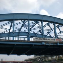 浅草からの水上バスでまず吾妻橋を潜り次に駒形橋を潜ります。吾妻橋は赤、駒形橋は青で橋の中央部分がアーチ型になっており両端の部分は逆アーチ型になっている珍しい橋のようです。水上バスからはいろんな色の橋が見られます。因みに厩橋(うまやばし)は緑でした。