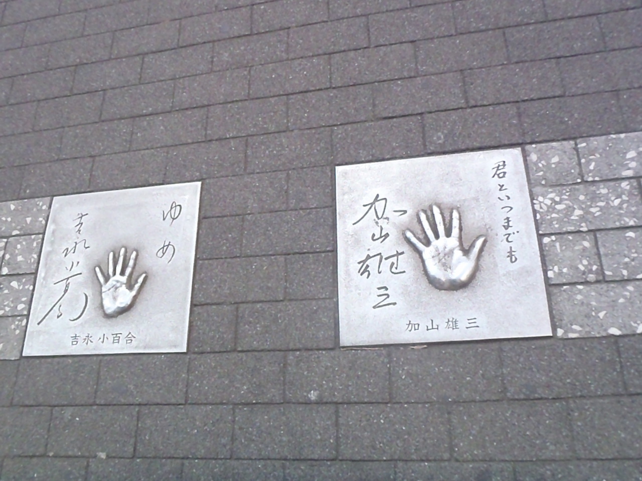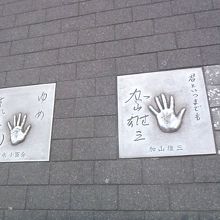 東宝スタジオなどがあることから銀幕のスターの手形が所狭しと広場内の足元に敷き詰められています。