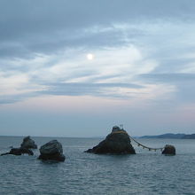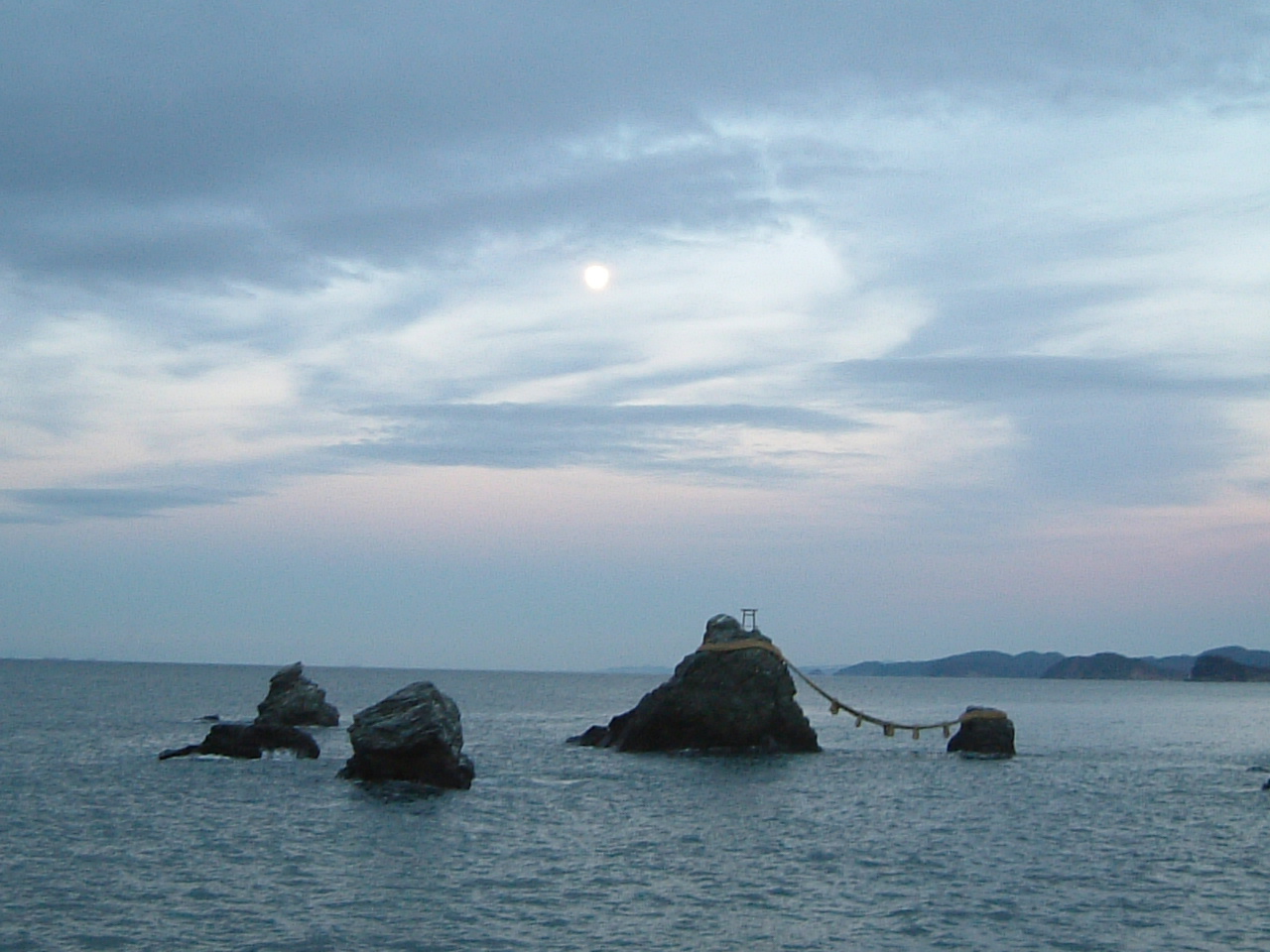 夫婦岩沖合い700mに神石がありその鳥居の役割が夫婦岩です
