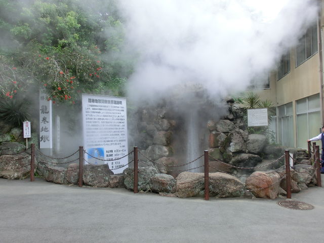 龍巻地獄は間欠泉で、30分くらいの間隔で噴出しているそうです。