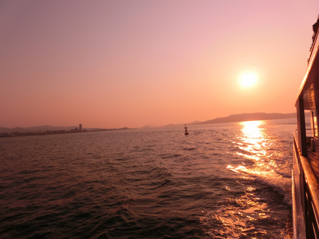 トワイライトクルージングをしました。夕暮れ時の博多湾をのんび~りとクルージングできます。