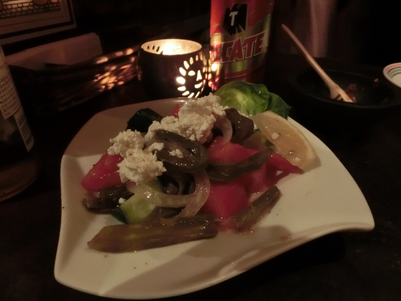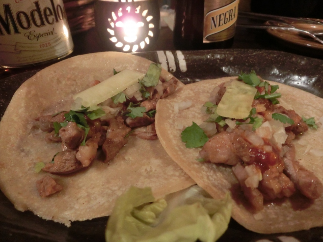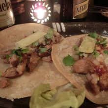 今回は、初、サボテンの入ったサラダを食しました。苦味があったりするのかなと思ったのですが、そんなことはまったくなく、さらっと頂けました。タコスは定番なので、2種類注文しました。面白かったのは、ステーキをテキーラでフランベしてくれるというので、注文すると、スタッフの方がテーブルで、びっくりするくらいの炎を出してくれ、とても思い出に残るパフォーマンスでした(笑)。