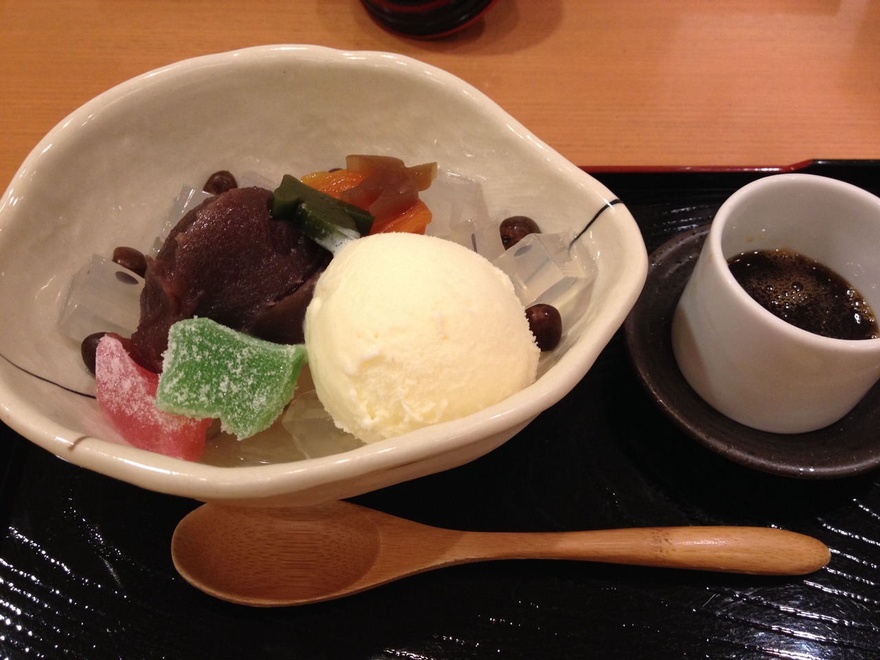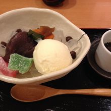 メニューは和菓子とお茶セットや、クリームあんみつ、また夏季には宇治抹茶かき氷などがありました。やや高いですが、落ち着いた空間でゆっくり過ごせたので満足です。疲れたので甘いものを・・・というときにぴったりなお店です。