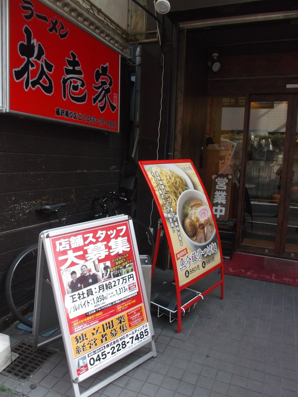 藤沢駅南口から2・3分のところ、雑居ビルの1階で間口が狭いので看板目印。この日、看板には人材大募集とありました。よほど人手不足なのでしょうか。