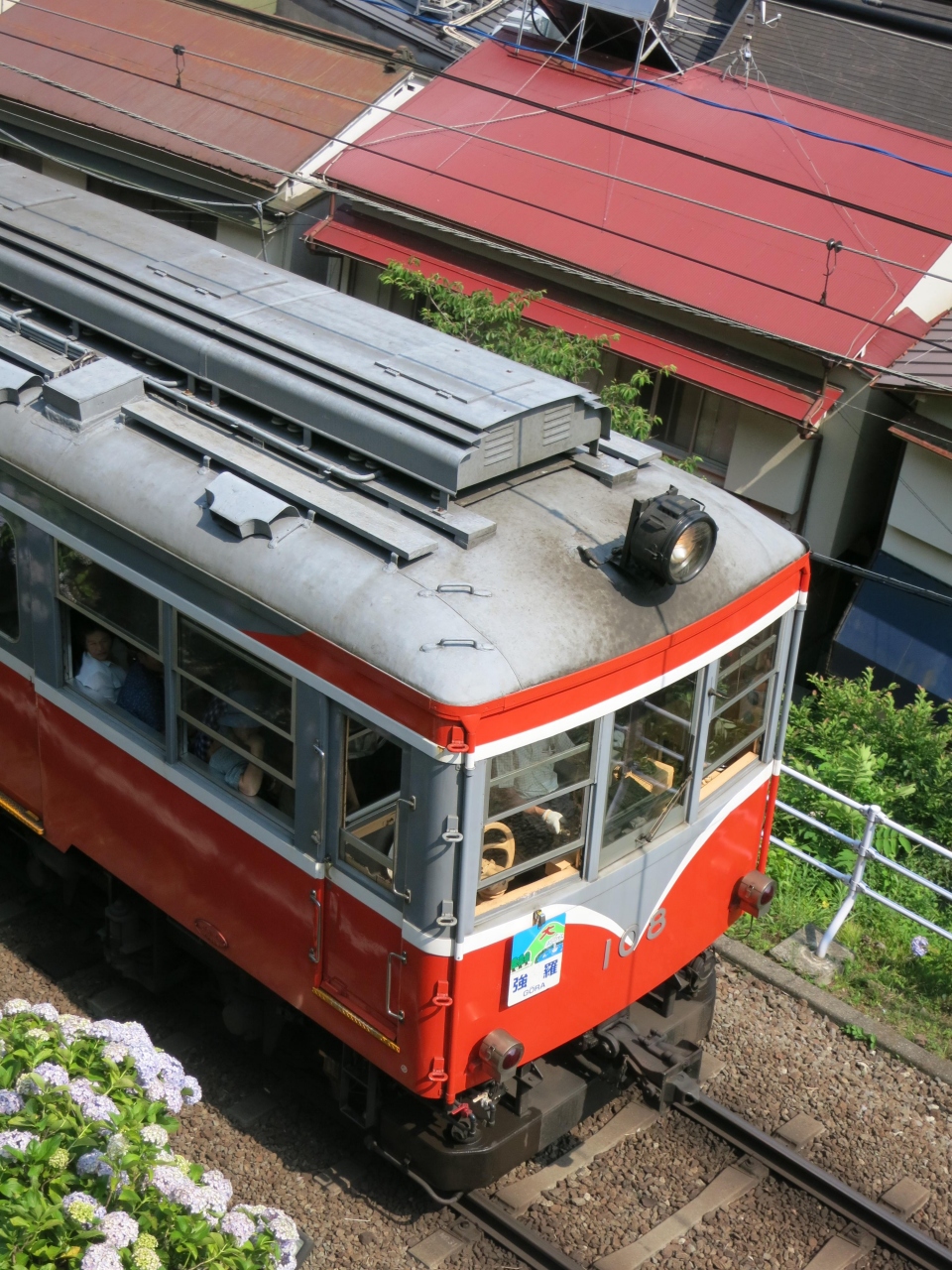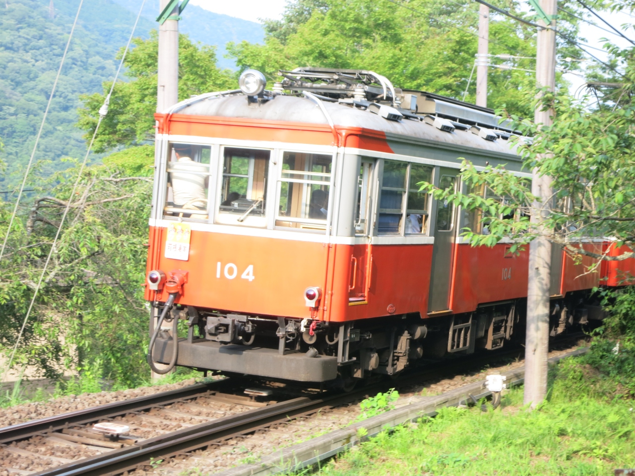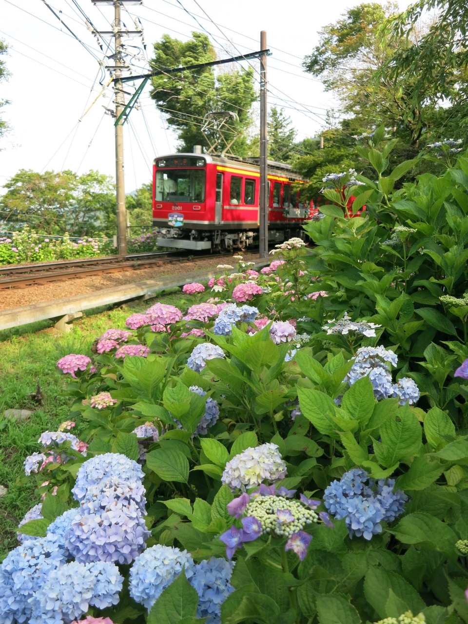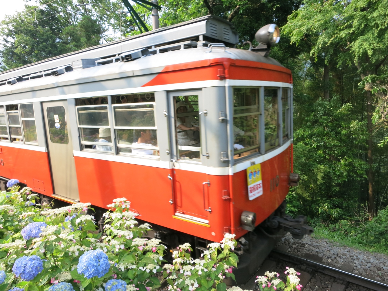 小田原と強羅を結ぶ登山電車で、3回のスイッチバックを行い、80パーミルと言う急こう配を上ります。周辺には見どころが多く、温泉地の足としても便利。特に6月から7月にかけては沿線にあじさいの花が咲き誇り、あじさい電車と言う特別列車も走ります。