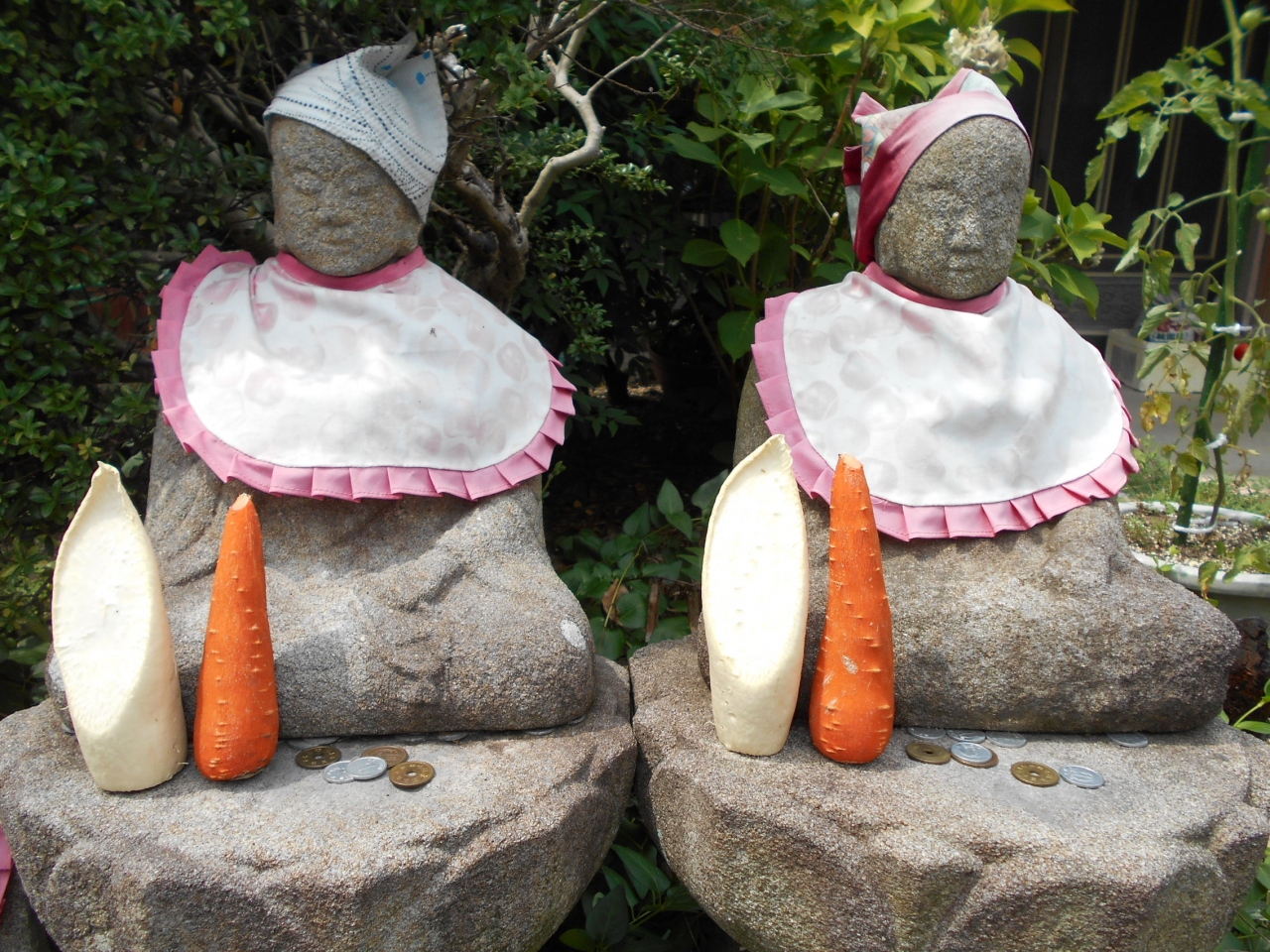 参道のお地蔵様には大根と人参が立ててお供えしてあったのが印象に残っています。