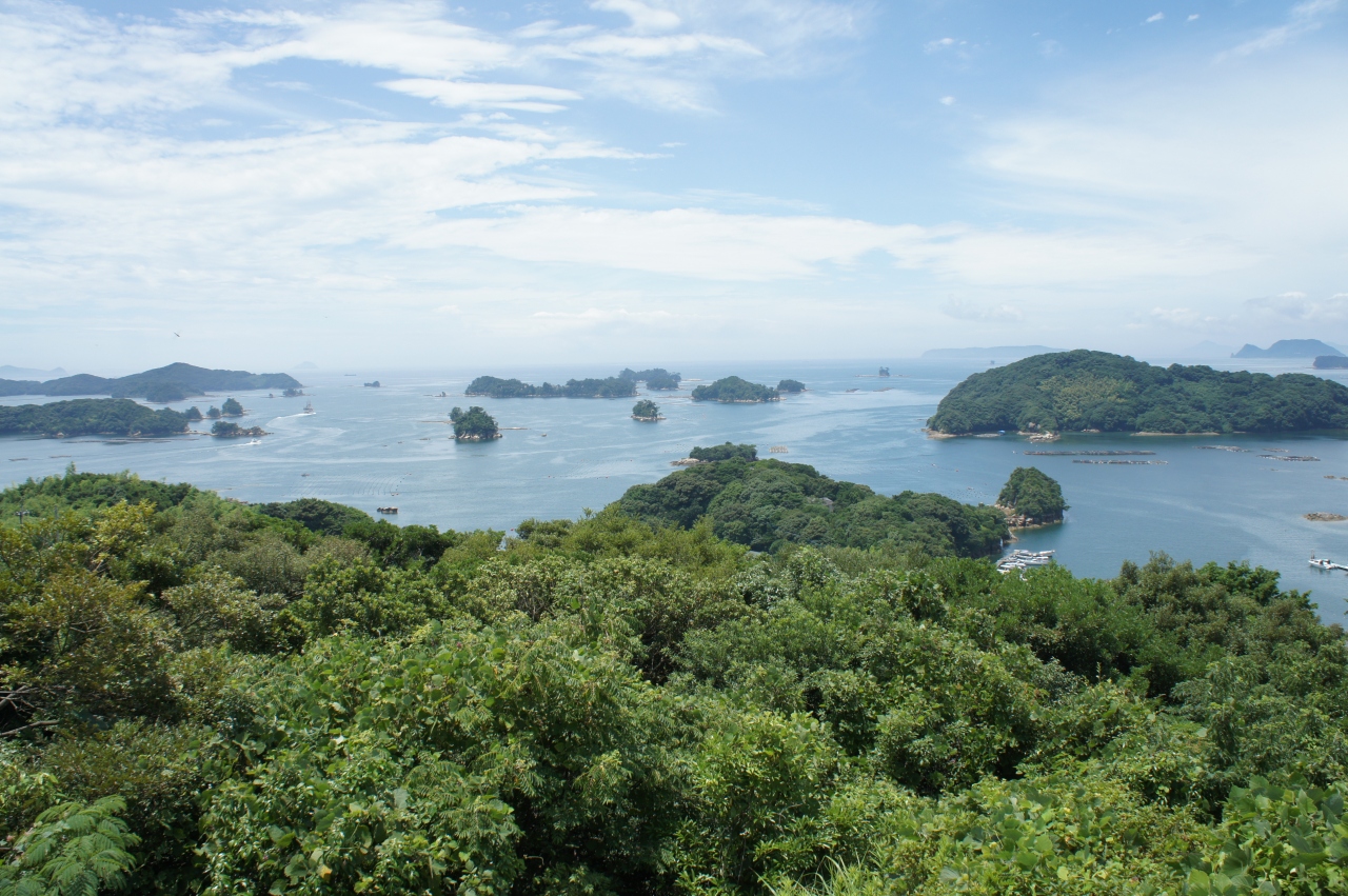 船越展望所は、パールシーリゾートからだと一番近い展望所。主要道沿いに突然現れます。九十九島を正面に見るアングルは石岳展望所と同じですが、距離が近い分、遊覧船の様子や島の細かいところも見えるので、やっぱりここはここの特徴があると思いました。