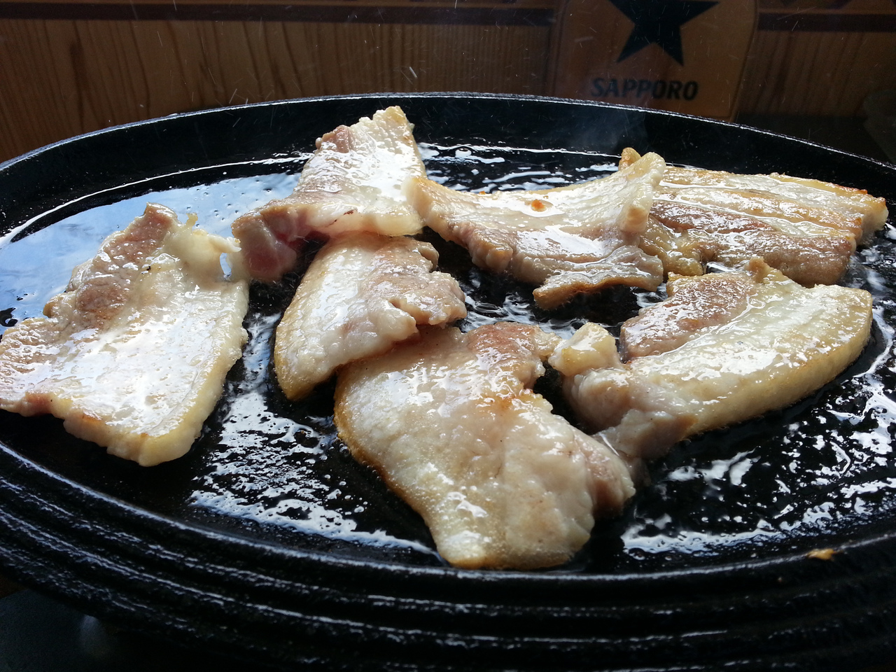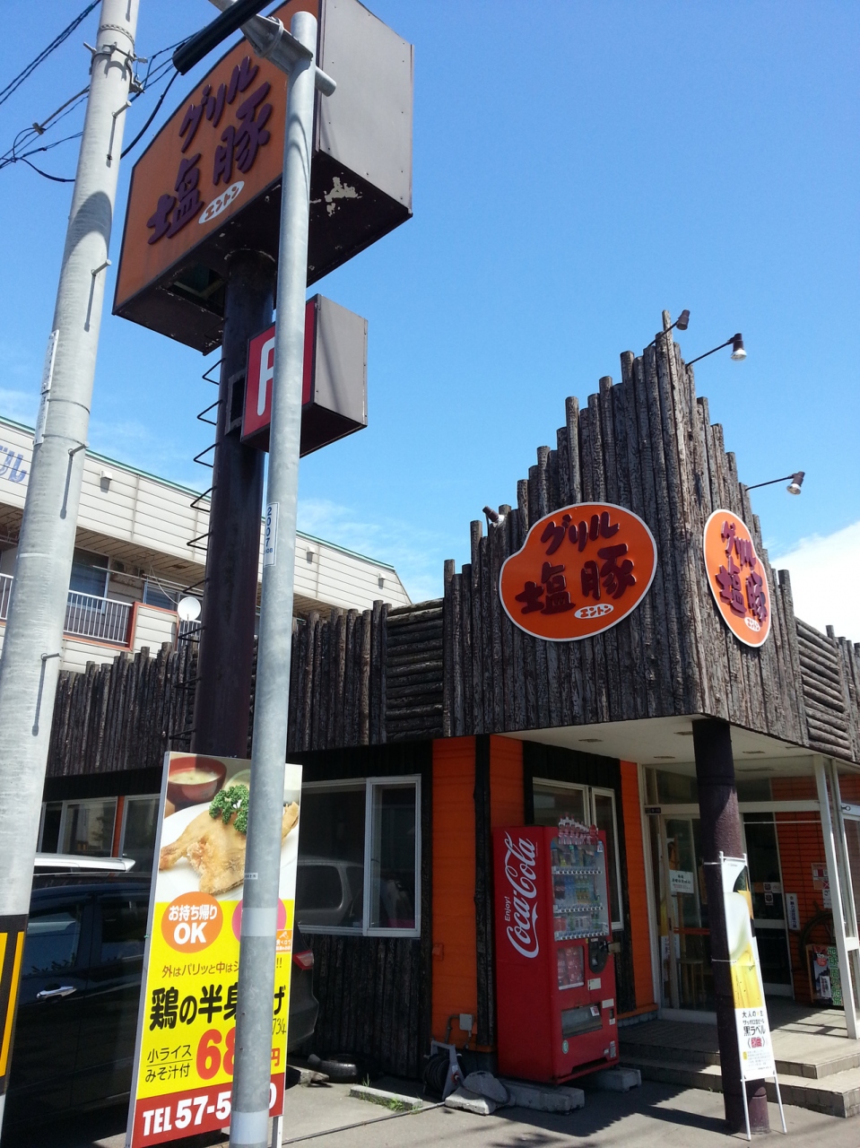 函館空港から函館駅へ空港バスで移動する途中に目印のオレンジ色の看板が見えます。要するに韓国のサムギョプサル(豚三枚肉の焼き肉)と思いきや、食べてみると熟成肉の旨さに驚きました。〆に300円と安い塩ラーメンも結構いけてました。