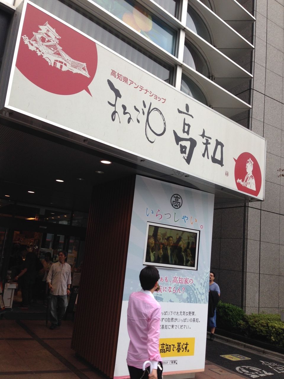 東京の銀座界隈には各県のアンテナショップが多くありますが、高知県のアンテナショップの【まるごと高知】は外堀通りのマロニエゲートの近くにあります。沖縄県のアンテナショップも近くにあります。高知産の野菜や鰹があったり民芸品やお酒がいっぱいありますよ。