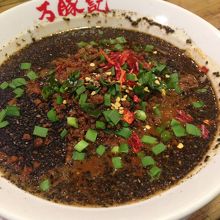 黒ゴマ担々麺は、麺が平打ちでしこしこ美味しい。