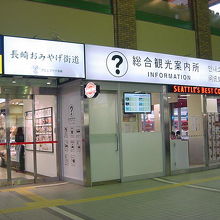 長崎駅の改札のとなりにある観光案内所。まさに長崎観光のスタート地点として便利な存在です。案内所のとなりには待合室があって、コーヒーショップも併設しているので、コーヒーを飲みながらその日の観光計画を立てるにも適しています。