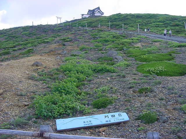 蔵王のシンボルと言えるお釜を取り囲むようにある外輪山の一角です。ここには神社やレストハウスがあるので、お釜を見学した後散策するのに適しています。たくさんのケルンが積まれていて、いろいろな記念碑の前で写真を撮っている人も多かったです。