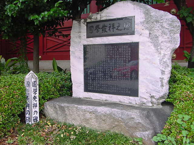 神田明神の境内、右手奥の駐車場に面したあたりにひっそりと立っているのが国学発祥の地の碑。それでも熱心に碑文を読んでいる人もいて、歴史的には価値があるものなのでしょう。碑文は今東光さんによるものだそうです。隣には銭形平次の碑もあります。